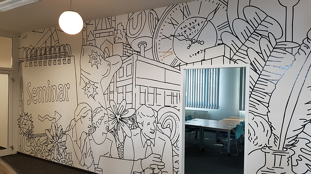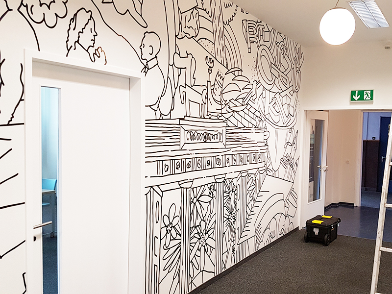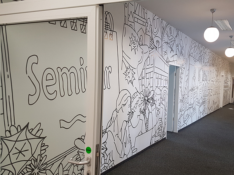 Wandtattoo im Flurbereich. Anbringung von ca. 90 m² Folie auf die Wand.