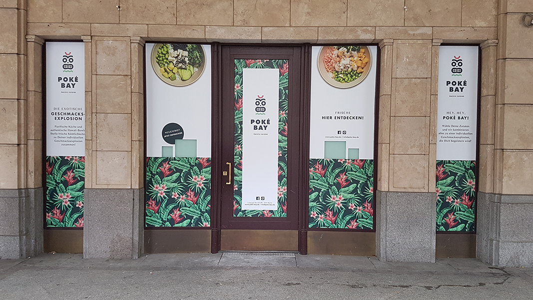 Schaufenster wegen Umbau mit Folie komplett verkleben. Aufkleber Easy Removable auf Scheiben und Tür aufkaschieren und nach dem Umbau ohne Rückstände wieder entfernen.